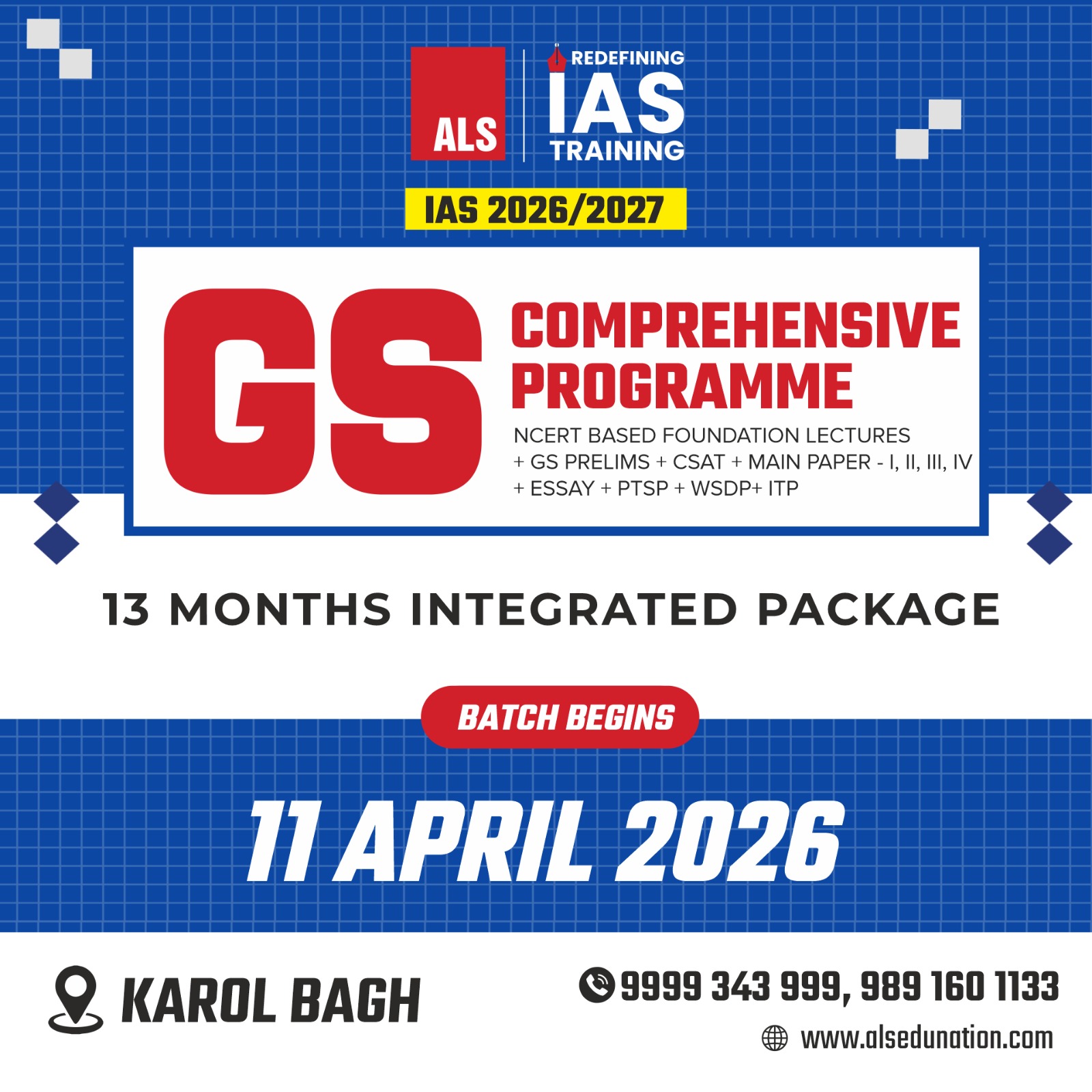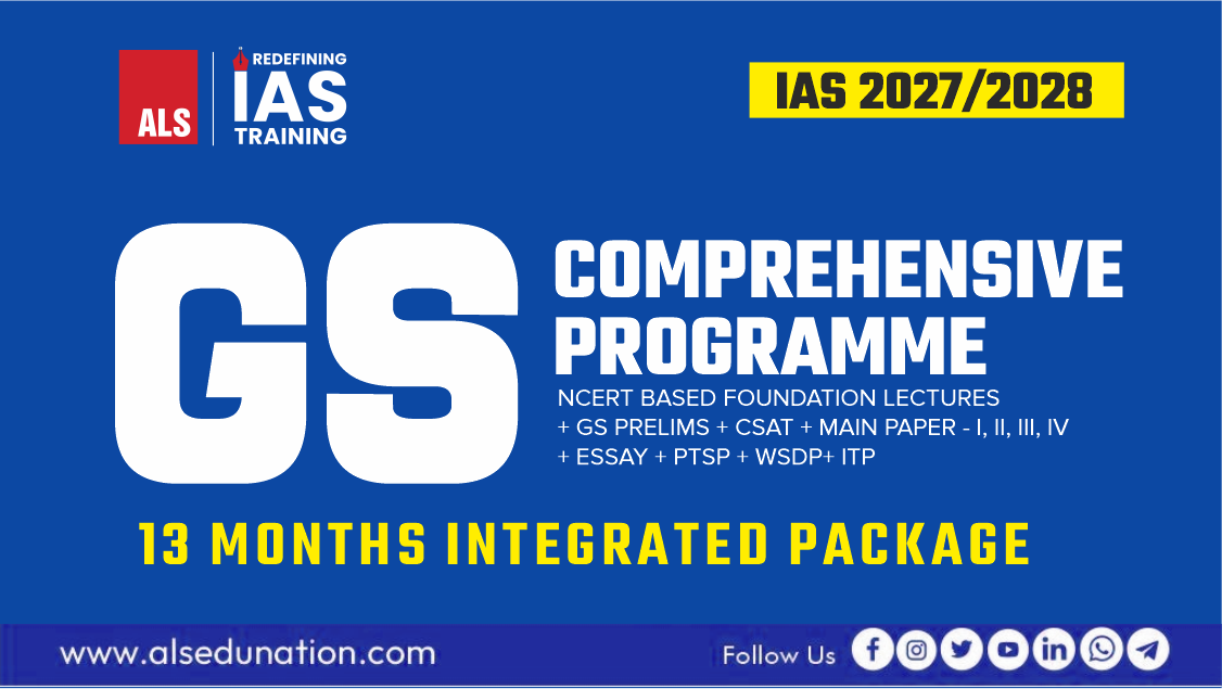 GS Comprehensive is the flagship programme of ALS. Its an Integrated, Comprehensive and complete package immaculately designed to address the extremely diverse and dynamic nature of General studies for Civil Services examination.