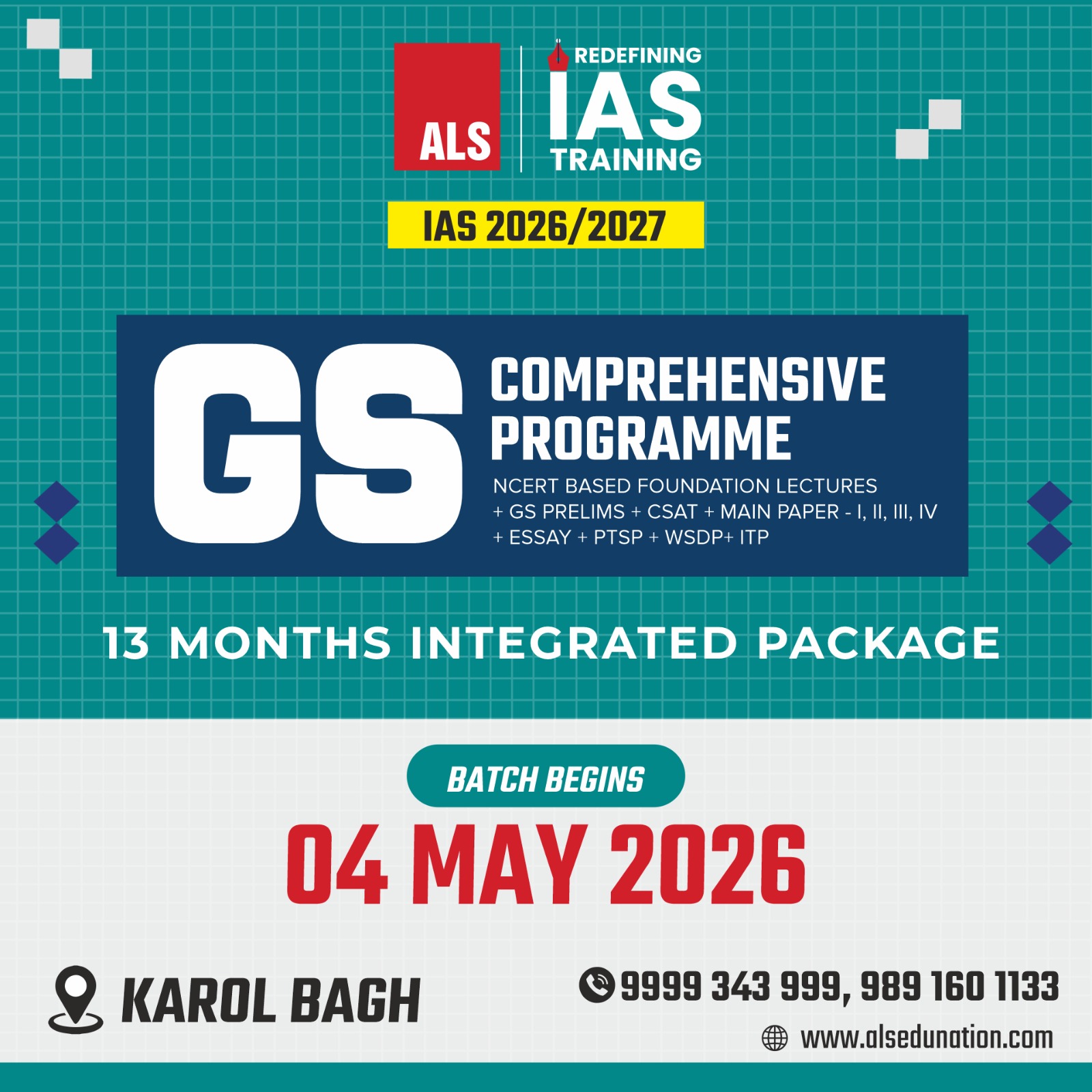General Studies is an extremely dynamic component in the entire scheme of Civil Services Examination. It deals with diverse subject matter that is constantly evolving intune with new developments. Through the constant effort of the ALS Team, GS Course has been upgraded and enriched in response to the rapidly changing needs.