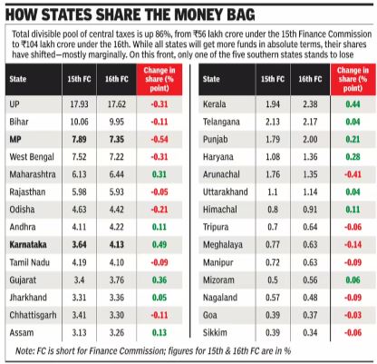 - Reinforces Fiscal Federalism: Maintains states’ share while highlighting structural issues like shrinking divisible pools.