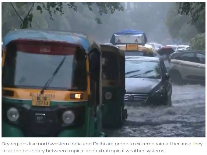 Dry regions like northwestern India lie at the confluence of tropical and extratropical systems. Moist monsoon currents from the Bay of Bengal and Arabian Sea increasingly collide with western disturbances, producing strong atmospheric instability and torrential rainfall. This interaction has become more frequent as climate change alters the behaviour of mid-latitude westerlies.