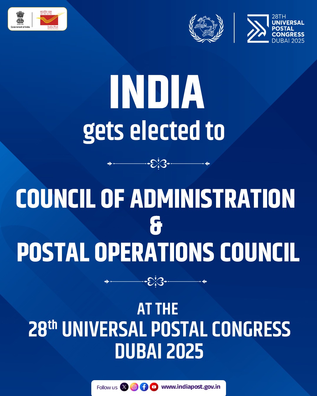 - India has been re-elected to the Council of Administration (CA) and the Postal Operations Council (POC) of the Universal Postal Union (UPU) during the 28th Universal Postal Congress held in Dubai.