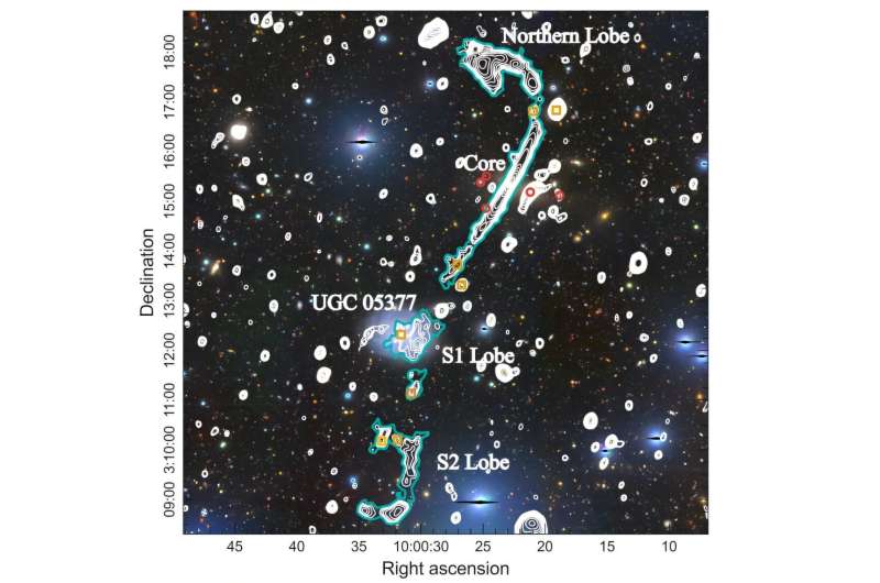 An international team of astronomers has recently used South Africa’s MeerKAT Radio Telescope to identify a new giant radio galaxy (GRG) within the COSMOS field, as part of the MeerKAT International GHz Tiered Extragalactic Exploration (MIGHTEE) survey. The discovery, published on November 11, offers valuable insights into the formation and evolution of radio galaxies and the large-scale structure of the universe.