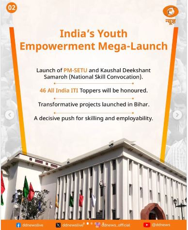- Recognition of Excellence: The Prime Minister also felicitated 46 All India Toppers from Industrial Training Institutes (ITIs) under the Ministry of Skill Development and Entrepreneurship (MSDE).