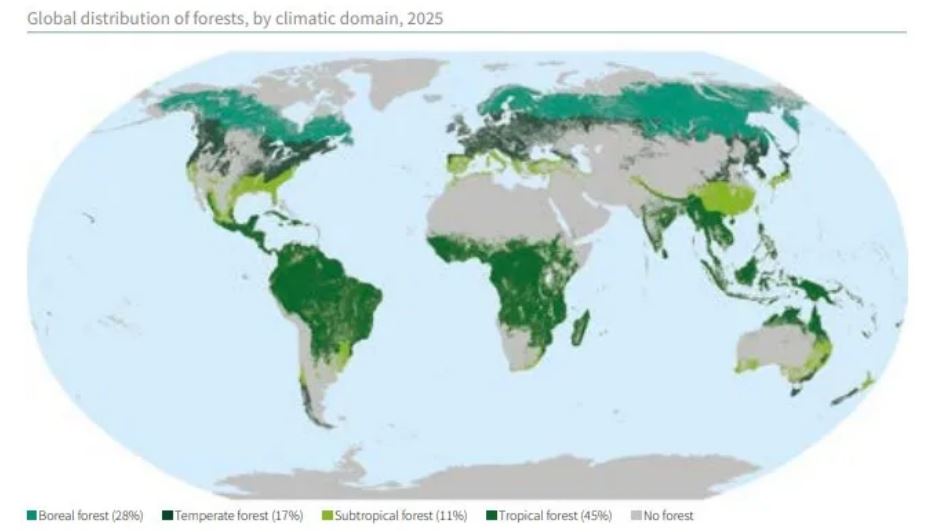 India has moved up to the 9th position globally in total forest area, according to the Global Forest Resources Assessment (GFRA) 2025, released by the Food and Agriculture Organization (FAO) in Bali. The report reflects India’s steady progress in forest conservation, afforestation, and sustainable land management.
