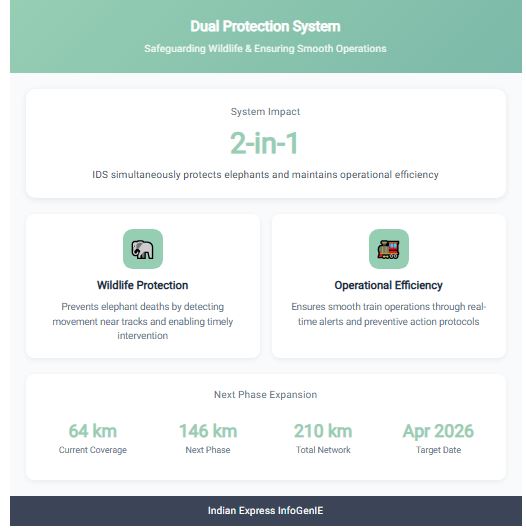 The Northeast Frontier Railway (NFR) has successfully completed trial works of the Intrusion Detection System (IDS) across four key railway sections in Assam and West Bengal to prevent elephant fatalities due to train collisions.