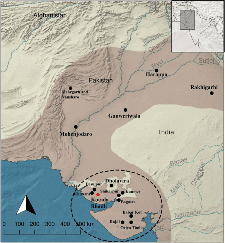 - KotadaBhadli lies in the Kutch district of Gujarat, positioned along inland trade corridors linking prominent Harappan centres such as Dholavira, Lothal, and Shikarpur.