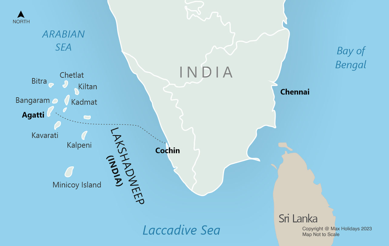 - Located about 483 km west of Kochi in the Arabian Sea