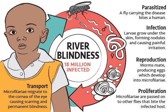 - Onchocerciasis, commonly called river blindness, is a neglected tropical parasitic disease caused by the filarial worm Onchocerca volvulus.