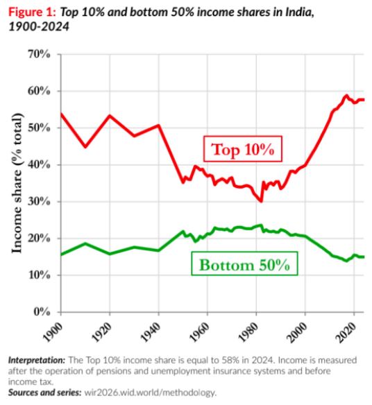 The World Inequality Report 2026, released by the World Inequality Lab, highlights widening disparities in income, wealth, gender earnings, and climate responsibility. India is identified as one of the countries with high concentration of income and wealth at the top.
