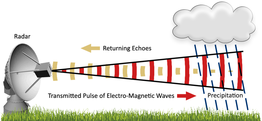 - The time taken for the signal to return helps calculate the distance of precipitation.