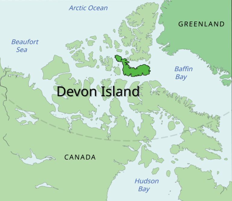 - Devon Island is located in the Canadian Arctic Archipelago within the territory of Nunavut, Canada, and lies well within the Arctic Circle.