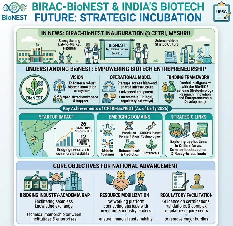 In a significant stride toward strengthening India's "lab-to-market" pipeline, the Union Minister recently inaugurated the BIRAC-BioNEST Incubation Centre at the Central Food Technology & Research Institute (CFTRI) in Mysuru. This development, coinciding with CFTRI’s 75th anniversary, underscores the government's commitment to fostering a science-driven startup culture, particularly in the high-value food and biotechnology sectors.